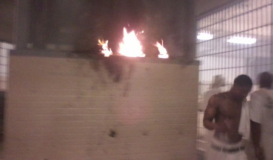 During the March 11 rebellion, prisoners set a guard station on fire.